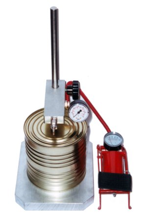 The can placed on the support plate is tight against the punch with rubberized pressure to ensure the mechanical seal. Air is then fed into the jar using an hand pump, then plunges it into a basin of water and bubbling indicates the possible loss of the seal of the jar.
